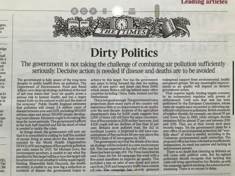 The Times has taken up the campaign for a new Clean Air Bill to ensure that everyone has the right to breathe unpolluted air. Hopefully that means my Clean Air (Human Rights) Bill is one step nearer being adopted by the government.