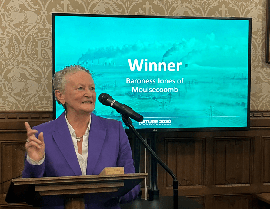 Our Westminster representatives won two of the six Nature 2030 Political Purpose Awards: Jenny won the 2023 Pollution, Waste & Air award and Caroline Lucas MP won the Lifetime Achievement award at the inaugural Political Purpose Awards held at the House of Lords on 20th September.